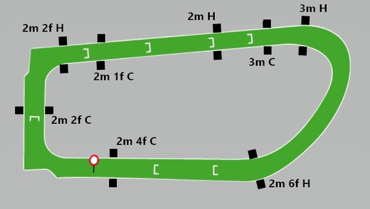 Arrivo impegnativo: il rettilineo finale è in salita per poco più di 2 furlongs (400 metri).